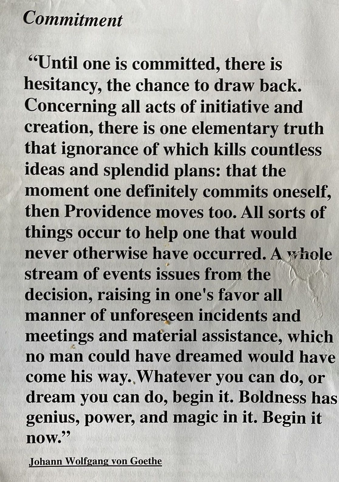 What do you think about this poem from Goethe? Have you experienced something similar when you committed yourself fully to a decision, plan, or dream?